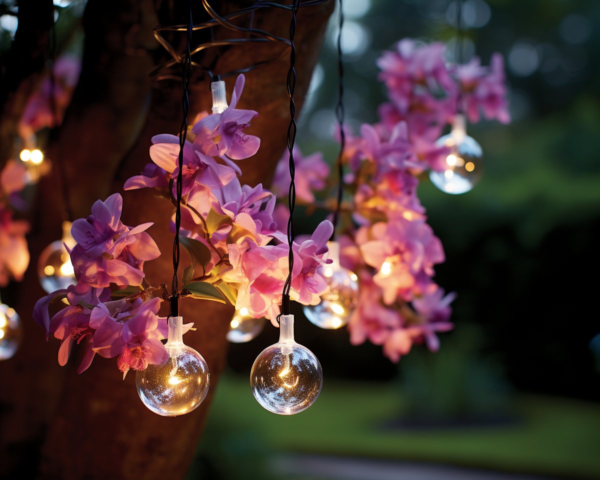 - Guirlandes lumineuses : Disponibles en différentes couleurs, longueurs et motifs, les guirlandes lumineuses sont un moyen simple et efficace d’ajouter une touche festive à votre jardin. Elles peuvent être suspendues aux branches des arbres, aux pergolas ou même aux clôtures pour une atmosphère chaleureuse et conviviale.